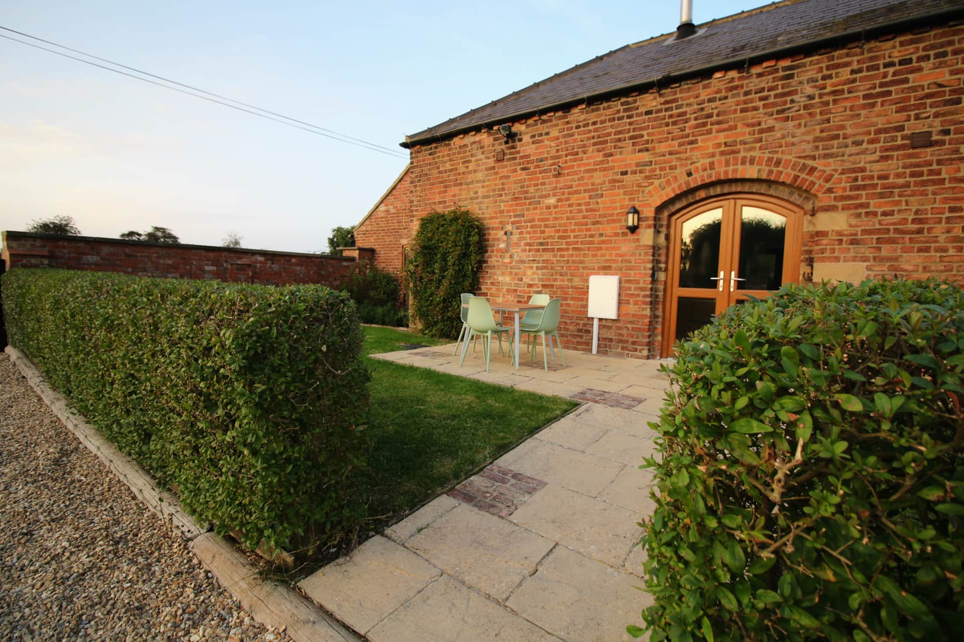 Outside, the private garden is furnished with a table and chairs for four—ideal for alfresco dining or enjoying a drink in the fresh Lincolnshire air. Guests also have access to a seasonal swimming pool, shared with other cottages but bookable by appointment for private use.